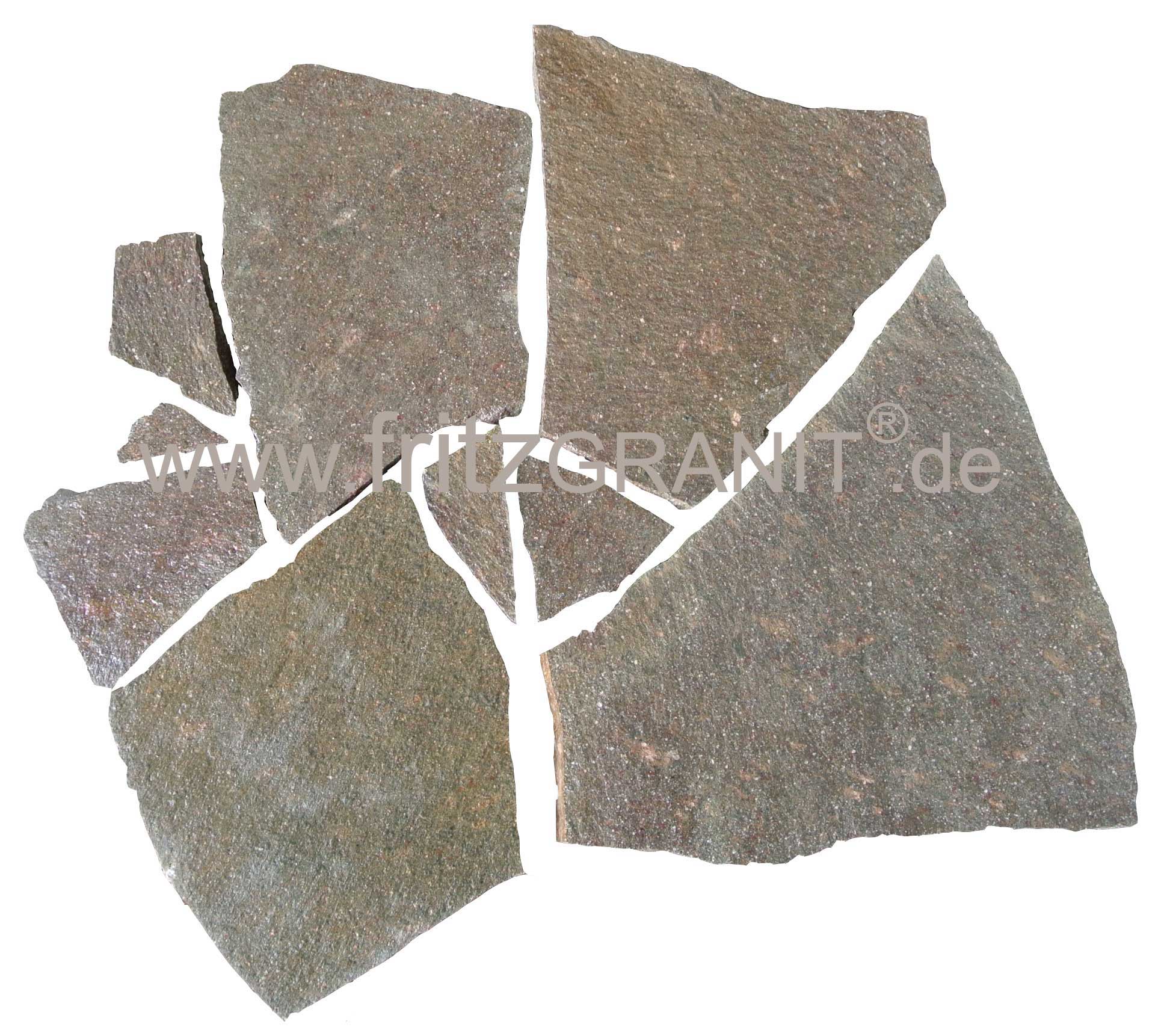 Oberfläche spaltrau (sehr eben), Kanten handbekantet und getrommelt, Unterseite kalibriert , frostsicher, nicht tausalzbeständig, ca. 80 kg / qm